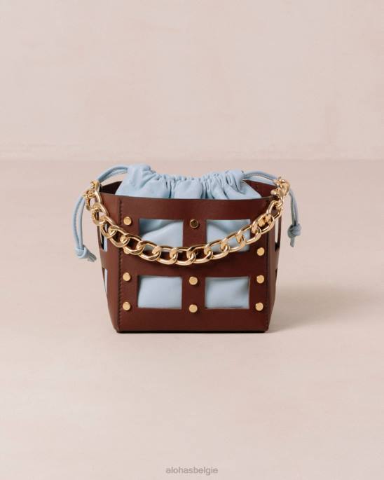 Alohas Belgie | Alohas De N – bruine en blauwe lederen tas vrouwen Z22T1057 Wine Bourgondië Baby Blue