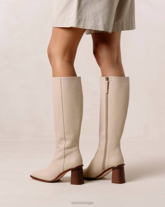 De iconische must-have hoge knieën, nu gemaakt van beige leer. Deze tijdloze hoge laarzen hebben een vierkante teen en een zijkant voor extra comfort. Hun langwerpige blokhiel voegt vleierij en pizzazz toe aan je stut. Breid uw schoenenrotatie uit met een glamoureus paar oost en neem koudere dagen in stijl aan.