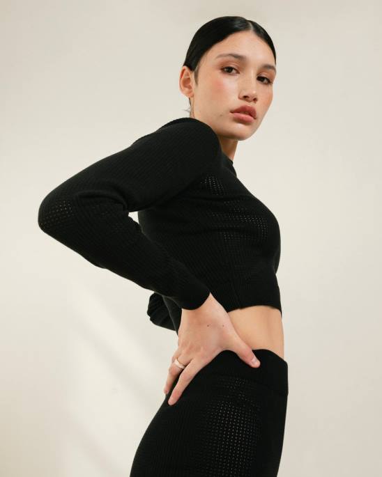 Ontworpen voor alle sportieve (ish) dames die er zijn, is Roy je op de Athleisure geïnspireerde crop top met heel veel mode-uitstraling. Het wordt gesneden van rekbare pointelle -brei in een klassieke zwarte tint en heeft ribbels rond de kraag, de onderste zoom en de manchetten. Draag het met de rookie -broek die moet worden bijgewerkt voor alles wat je overweegt te oefenen – yogasessies, koffieruns en nog veel meer.