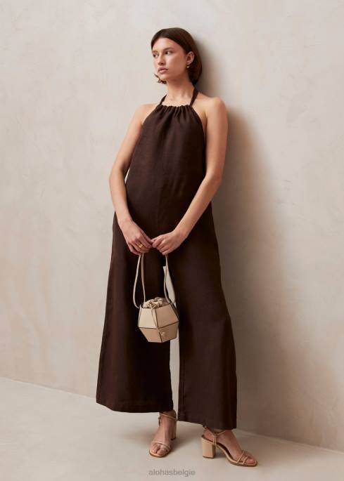 Alohas Belgie | Alohas Yona – Brown Linen Jumpsuit vrouwen Z22T605 bruin