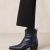 zwart-witte croc effect lederen cowboy enkellaarzen