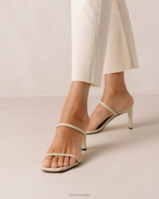 Beige Leather Two-Trap Mule Sandals