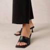Cream lederen hakken sandalen met gespeld detail