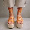 Essentieel voor elke zomergarderobe, deze door Espadrille geïnspireerde slingback-sandalen laten je voeten niet naar beneden wanneer zeevakanties rond rollen. Ze zijn gemaakt van bruine lederen banden en ingesteld op een 3 cm jute platformzool. De verstelbare rugriem wordt vastgemaakt met een vierkante, goudkleurige gesp. Werk goed met linnenjurken, denim shorts en alles daartussenin.
