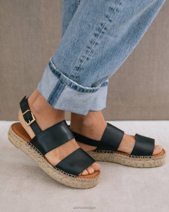 Zwart leer met twee raspespadrille sandalen