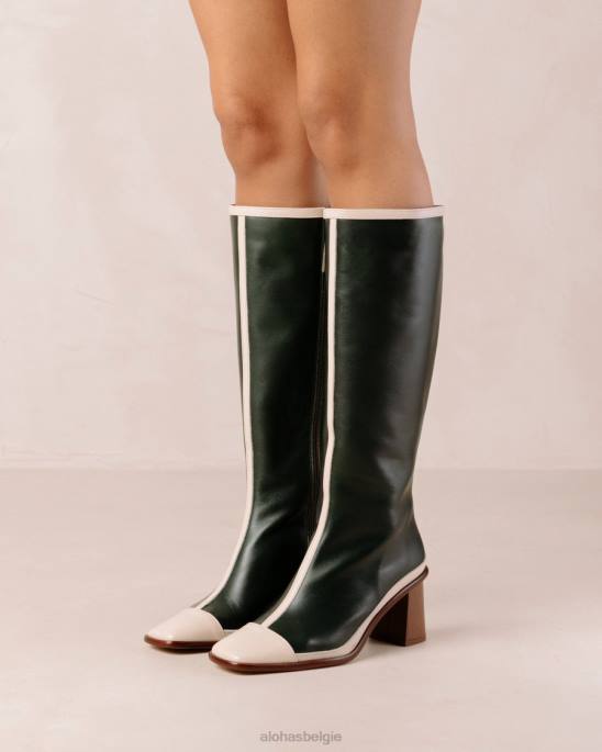 Wit en groen lederen retro-kniehoge laarzen