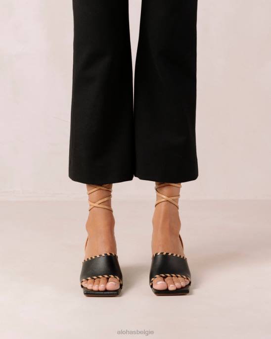 Alohas Schoenen | Alohas kitty – zwarte lederen sandalen vrouwen Z22T372 zwart