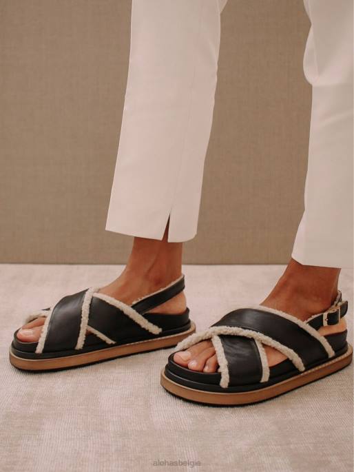 Alohas Schoenen | Alohas Marshmallow – Zwart leer en sandalen vrouwen Z22T112 zwart