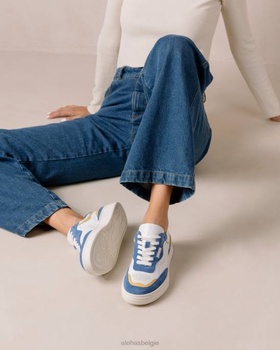 Wit en blauw lederen low-top sneakers
