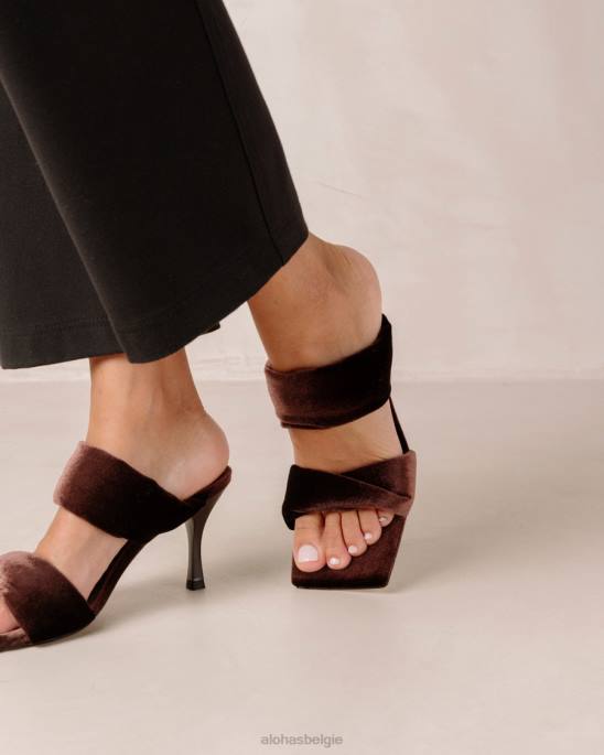 bruin fluweel twee-riem muildieren met stiletto-hiel