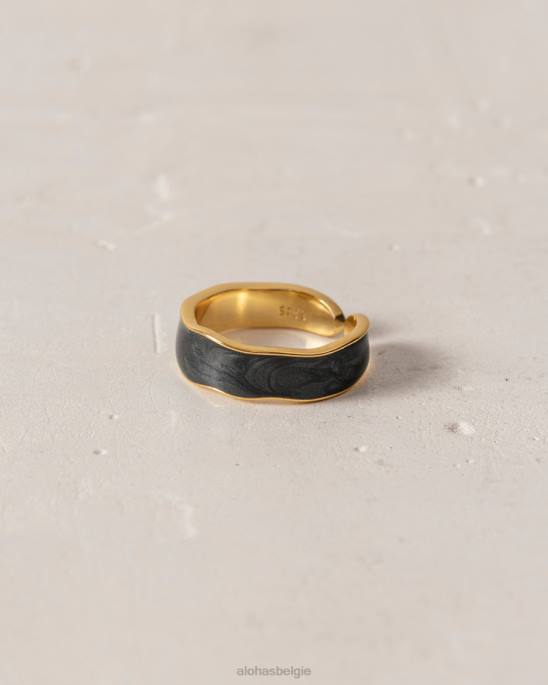 Duurzame versierij binnen handbereik! Gemaakt van vergulde sterling zilver, heeft de aBeam golvende randen en een contrasterende zwart gelakt inleg. Houd het mooi en eenvoudig of stap het met veel dunnere ringen voor een onderscheidende maximalistische look.