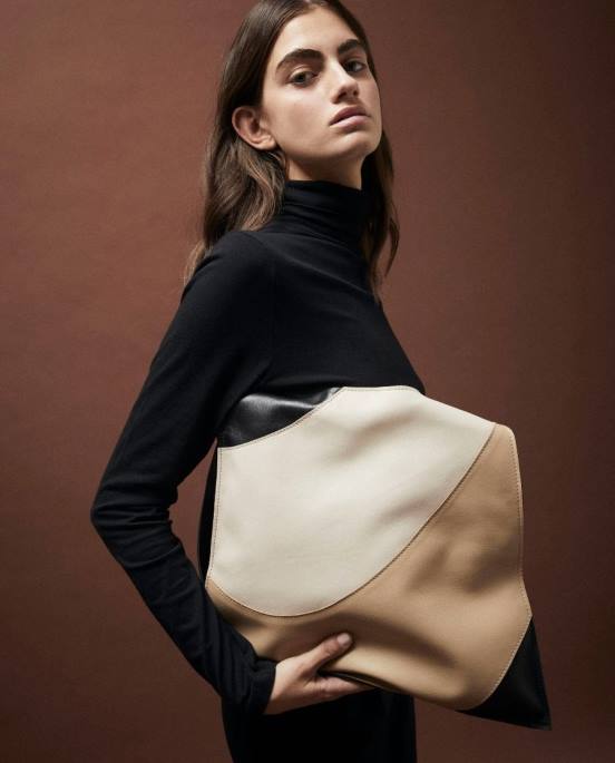 Alohas Belgie | Alohas De L caleidoscoop – zwart en beige lederen handtas vrouwen Z22T1096 caleidoscoop zwarte steen beige print
