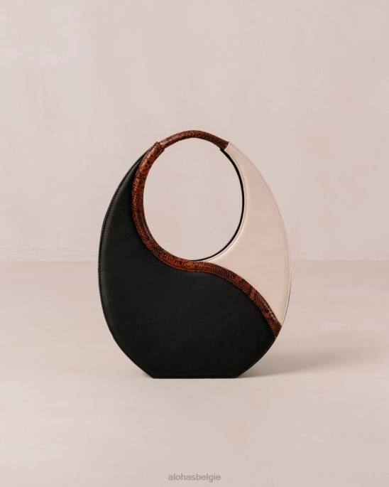 Ben je een minimalist in hart en nieren? Deze kromme bovenste handgreep is er een om te hebben. Strak, modern en dramatisch in precies de juiste hoeveelheid, de O Venti Indo is gemaakt van zwart -wit leer. Het eigentijdse, schone silhouet is synoniem met statement-stijl en zal je look onderscheiden van de menigte. We zijn er dol op!