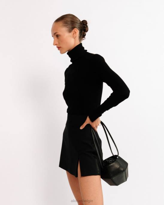 Alohas Belgie | Alohas De V – zwarte lederen handtas vrouwen Z22T1046 zwart