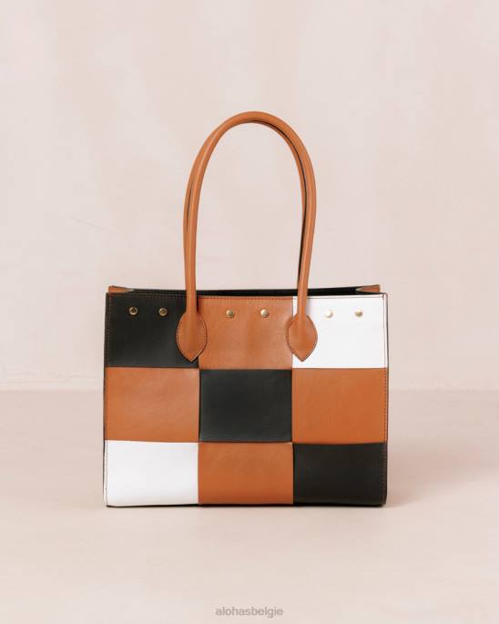 Alohas Belgie | Alohas De W scacchi – bruine multicolor lederen handtas vrouwen Z22T1049 Scacchi Black Tan Bright White