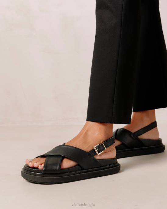 Alle zwarte lederen crossover-sandalen met platformzolen