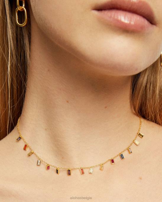 Alohas Belgie | Alohas Waterman – Multicolor edelsteen gouden ketting vrouwen Z22T1110 goud