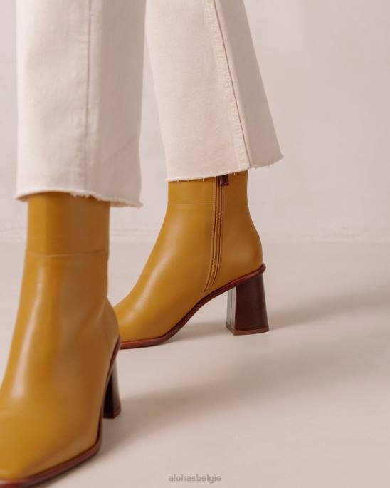 Yellow lederen enkelschoenen met contrastblokhiel