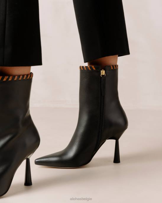 Black lederen enkellaarzen met stiletto -hiel